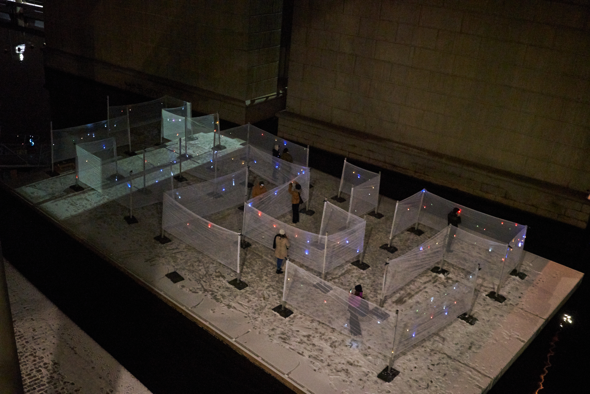 In winter 2021, Fluke created the program for Galaxy Pontonen – a winter placemaking project exploring the universe on a floating platform initiative in Liljiholmen, Stockholm using a labyrinth where new lights