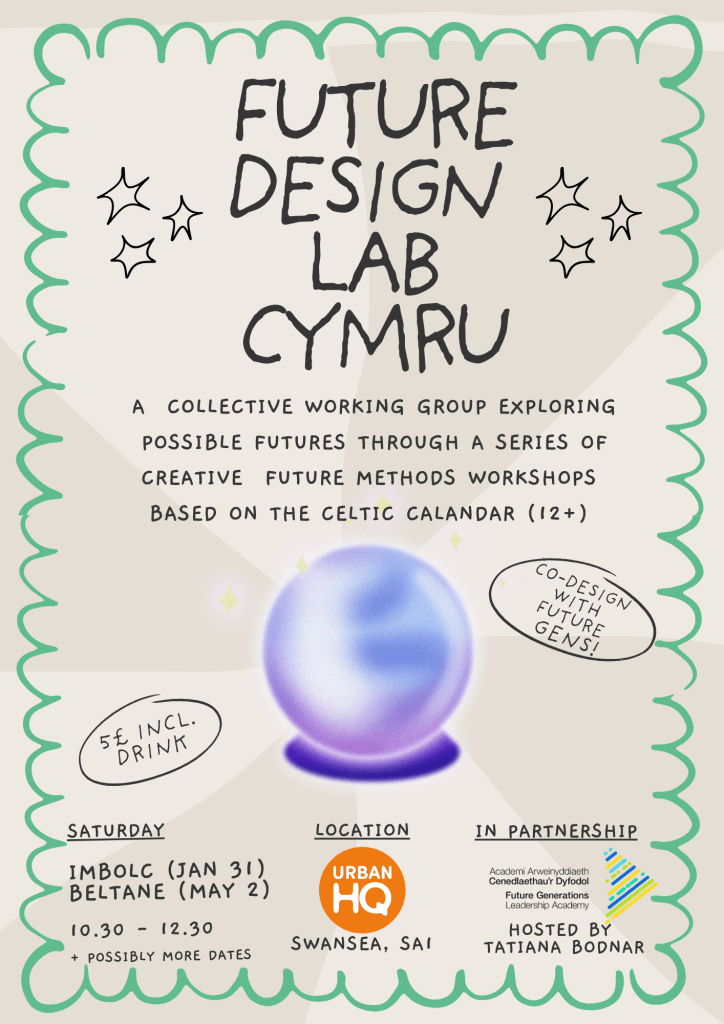 As part of my Change Plan for the Welsh Future Generations Leadership Academy, I have convened the first Future Design Lab Cymru. The collective working group explores different futures methodologies through craft, play and Welsh folklore, based on the Celtic calendar.